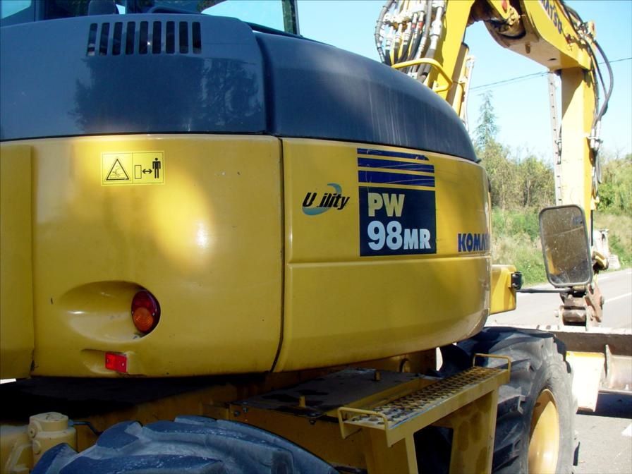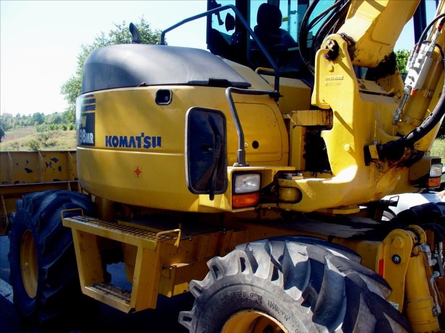 Pelle Pneus KOMATSU PW 98MR, Année 2008 ; 6800h. Ligne BRH+Ligne Rotatif. Plusieurs Godets. Matériel Très Propre, Très Sain. Prix : 37500€ HT ; Tel : 0608066192