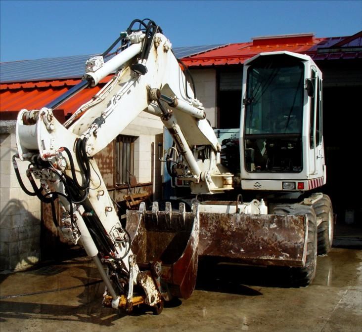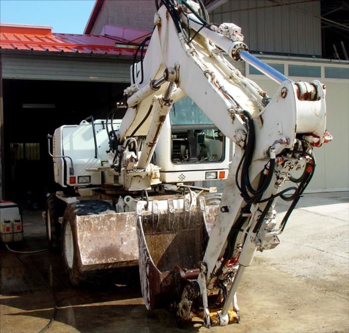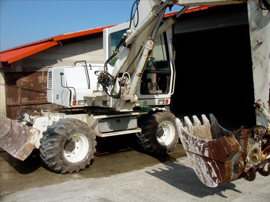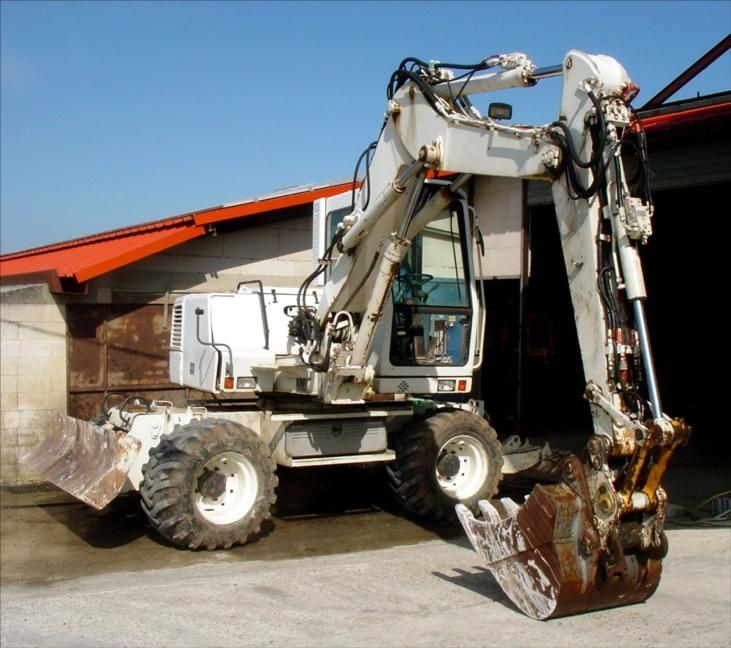 Ligne Marteau et + ; 4 Roues Directionnelles « Roule en Crabe » ; 4 Pneus Simple Grosse Taille 90% Bons ; 5 Godets : 1 Godet Curage Orientable ;1 Godet Curage Simple ; 1 Godet Drop ; 1 Godet 40 ; 1 Godet 70 ( Vitre basse AV Cabine cassée, Manque 1 Rétroviseur )